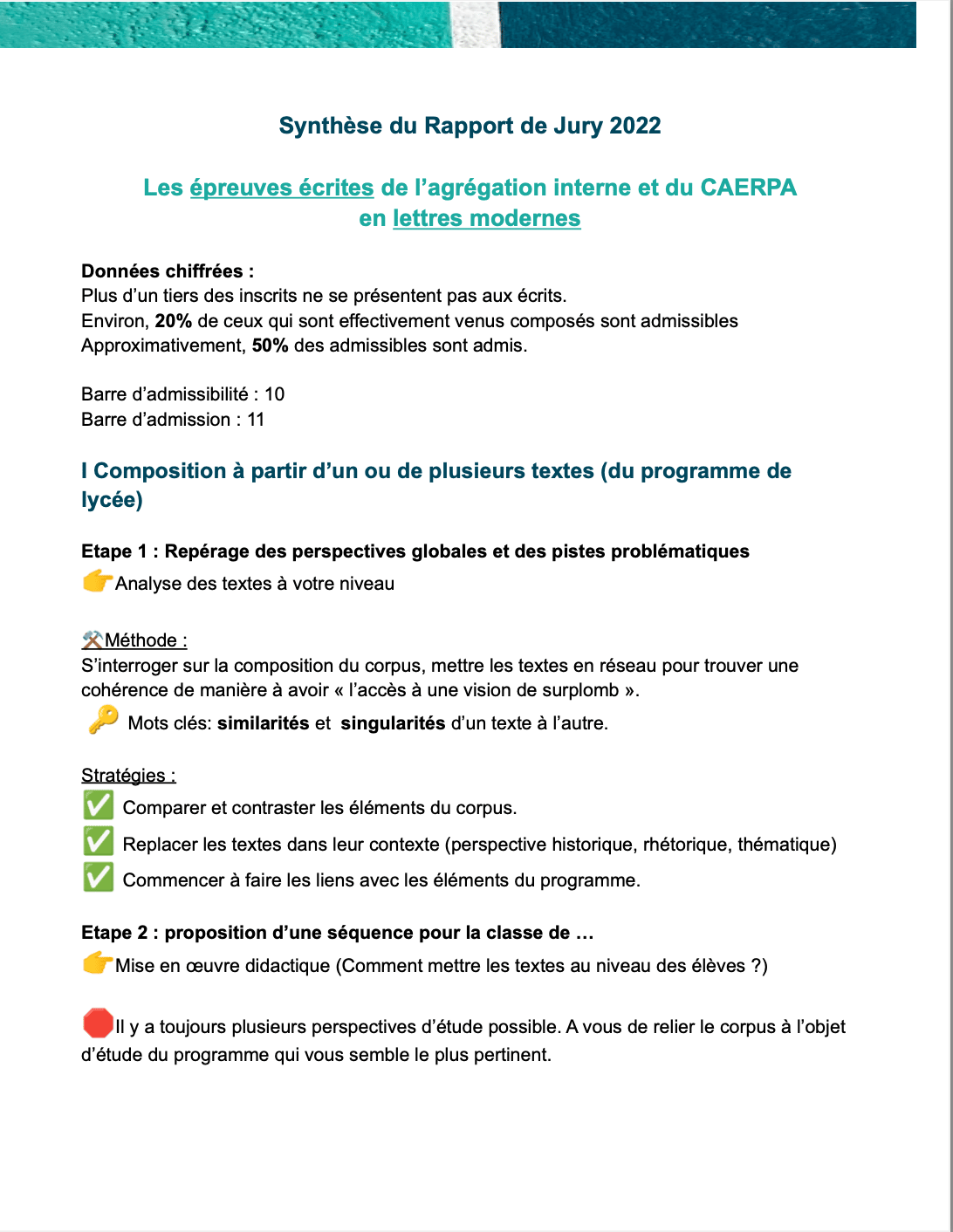 Il faut toujours avoir en tete les attentes des correcteurs et des examinateurs pour avoir le plus de chances possibles de répondre à leurs critères.